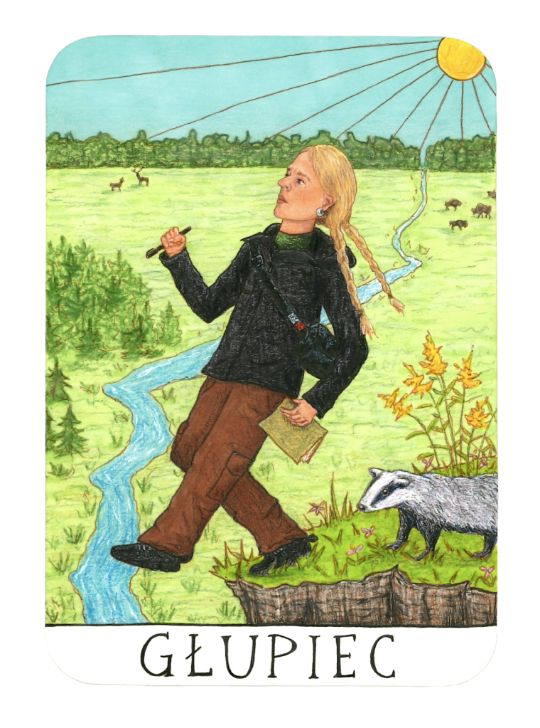 A worn stack of cards caught my eye, perched on a shelf across from the tiled woodburning kitchen stove that now just stored flame-licked pots and pans. I was renting this space that scraped the outskirts of Białowieża Forest and these weren’t my things. But something pulled me closer. Grey sunlight filtering thinly through the window shone not on a regular deck, but rather a set of tarot cards. I gave them a lopsided shuffle, flipping one up from the middle. The Fool glanced at me askew from his peripheral vision. He was a young, medieval-looking man, blissfully unaware that he was stepping off a cliff. I searched for the card online, getting hit with an AI summary I couldn’t dodge: